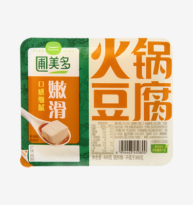 豆腐的起源说法众多,其中流传最广的说法是西汉高祖刘邦之孙-淮南王刘安发明。据说因淮南王好求长生不老,与“八公”相伴,登山炼丹求仙。他们取清冽的山泉水磨制豆汁,却偶然使得豆汁与盐混合,凝成了美味可口,白嫩鲜滑的豆腐。豆腐流传千年,成为了大众喜爱的美食之一。各个国家口味不同,豆腐也因此有多种烹饪手法及加工方式。圃美多豆腐秉承“真纯美食,放心食品”的原则,采用健康食材,打造健康饮食。圃美多豆腐使用优质黑龙江非转基因大豆,层层过滤,使用直饮标准的RO净化水,采用先进自动设备熟浆工艺,引进日本高端豆腐生产线,满足豆腐多样化加工需求,不使用防腐剂、人工色素、人工添加剂,保质期长达30天,在圃美多对自身的高标准要求下,圃美多制作出的豆腐豆香浓郁,干净卫生。