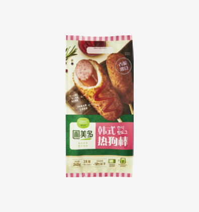 选用韩国进口圃美多专配面包粉,通过高速和面工艺,实现更松软、筋道的口感。 内麸质是热狗棒更松软、筋道。面包粉内含有1%的调味乳粉,使热狗棒面包更香。 甄选Q弹脆皮热狗肠,肉质结实紧密,肉汁爆浆,口感鲜美,鲜而不腻。选用进口面包糠,内含马铃薯粉和糙米粉,金黄诱惑,酥脆无比。